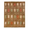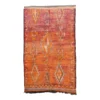 Beautiful Moroccan style handmade wool rug with a beige field. This Modern rug has brown, blue, red, and yellow accents and beige fringes featuring a gorgeous all-over boho minimal design.